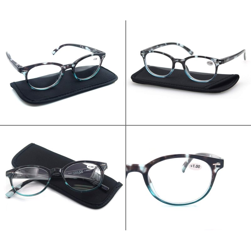 - [Package Details]-3 pairs of same color reading glasses,3 glasses pouches,1 cleaning glasses cloth.