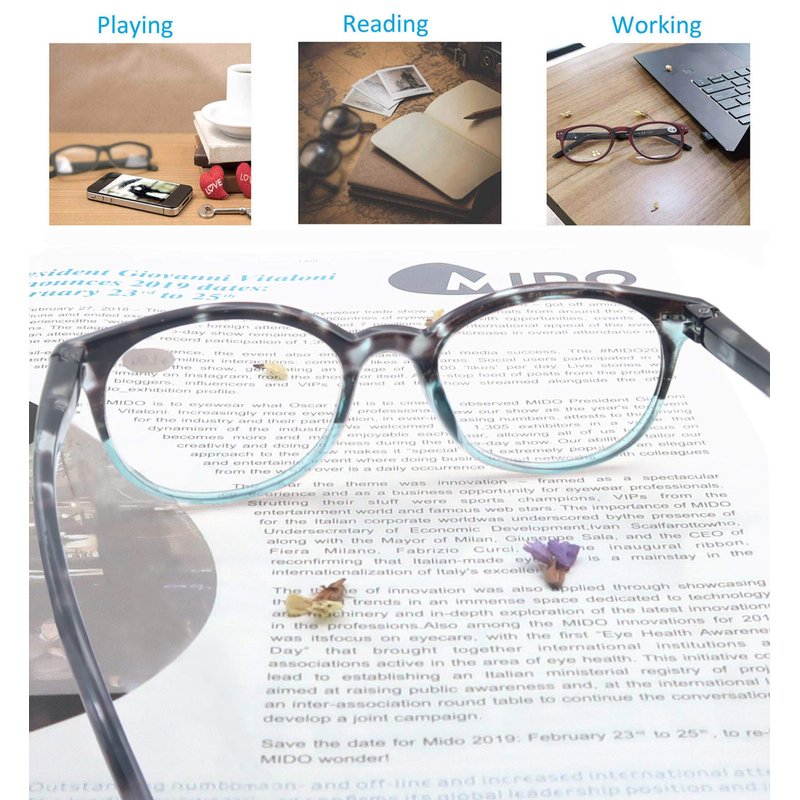 - [3 Blue Demi Reading Glasses]-Lens width:1.9in,Bridge width:0.6in,Arm width:5.4in. 1 PCS womens reading glasses is 22g/0.066lb.Resin aspherical lens, no distortion.