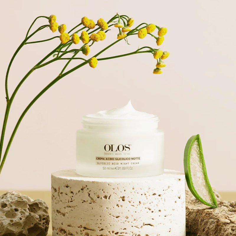 OLOS Glycolic Acid Night Cream, 1.7 oz - Intensive Night Cream with Shea Butter - Revitalizing and Renewing Skin - Deep Exfoliation Night Face Cream