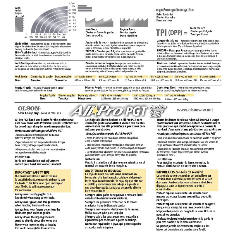 Olson Saw APG73805 3/8 by 0.025 by 105-Inch All Pro PGT Band 4 TPI Hook Saw Blade