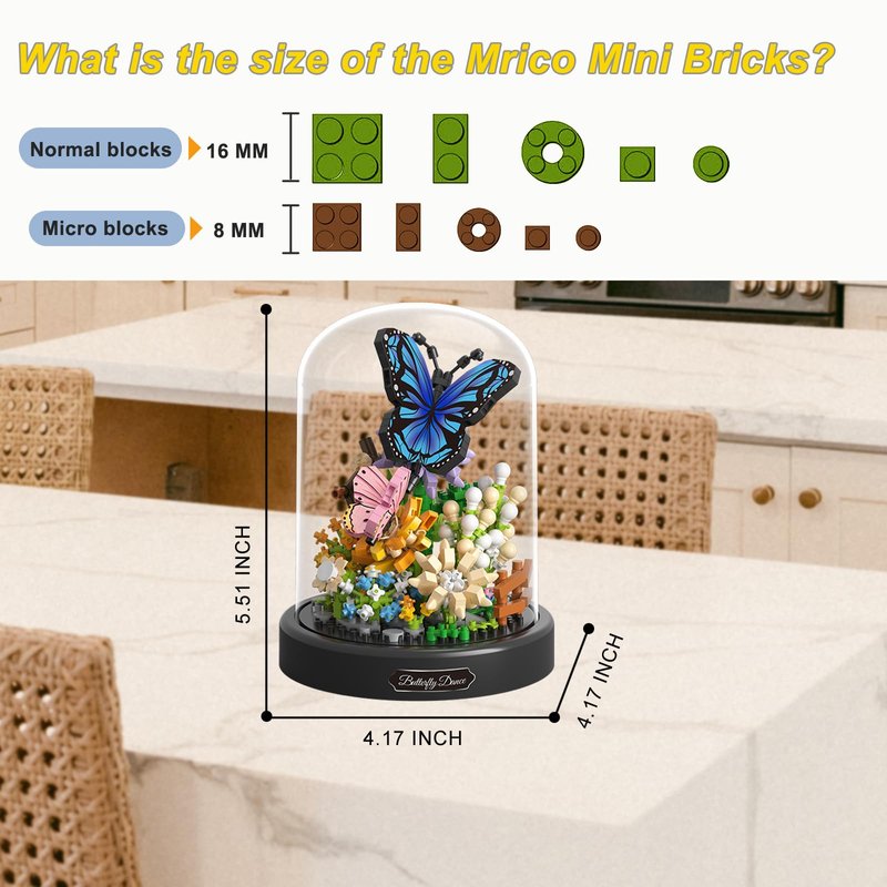 - [Never Wither]This flower butterfly-themed mini bricks building block toy has a very beautiful overall shape.It is a creative gift for family and friends.