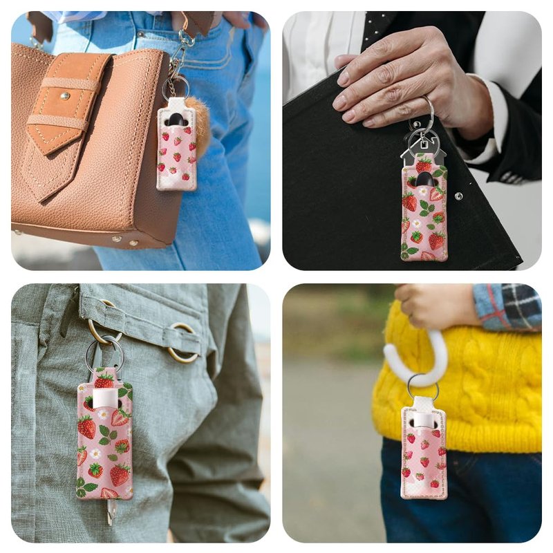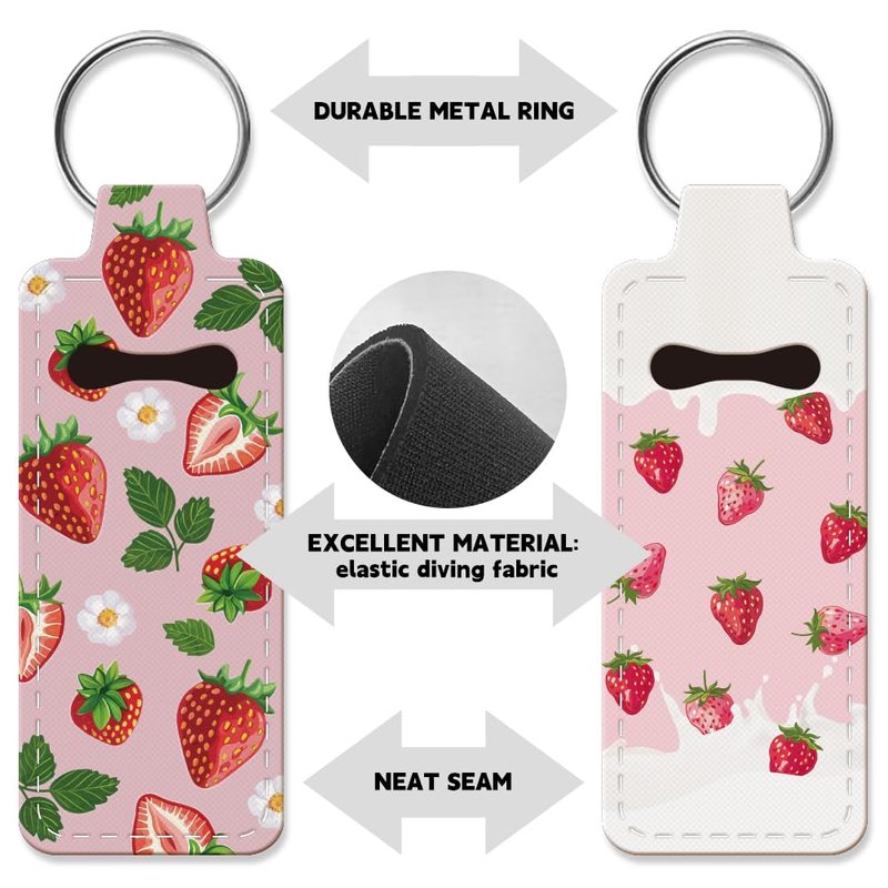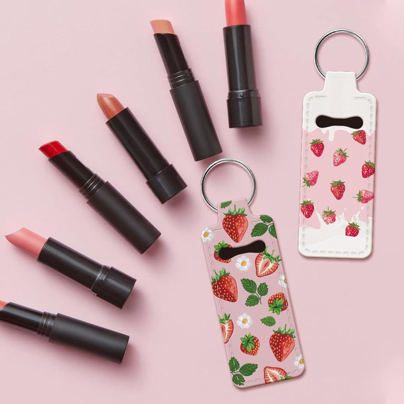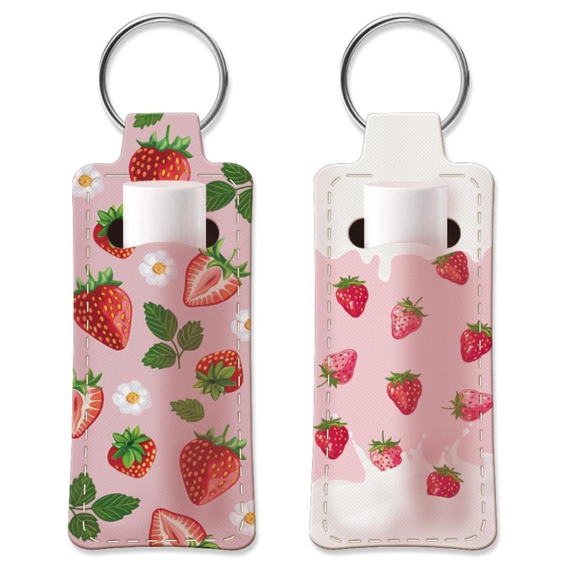 - Fruit Theme--These rubber lipstick keychains are designed into strawberry, leaves and flower pattern. Fine printing technology makes every pattern delicate and beautiful.