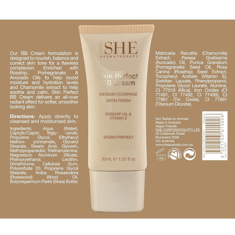 SHE Skin Perfect BB Cream is designed to nourish, balance and correct skin tone for a flawless complexion. Our formulation is based on correcting rather than masking skin tone giving skin a fresh, radiant natural look.