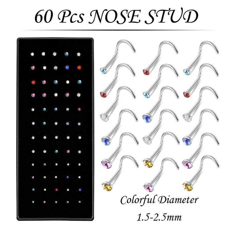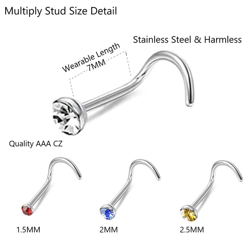- ❷ Perfect User Experience✔ ➤Nose rings studs screw shape can be passed through nose or ear easily. Screw shaped at the bottom can avoid falling off. Shiny crystal of nose rings hoops will attract others attention and make you facial features more delicate. Multicolor nose piercing jewelry can be chosen to wear in different occasions.