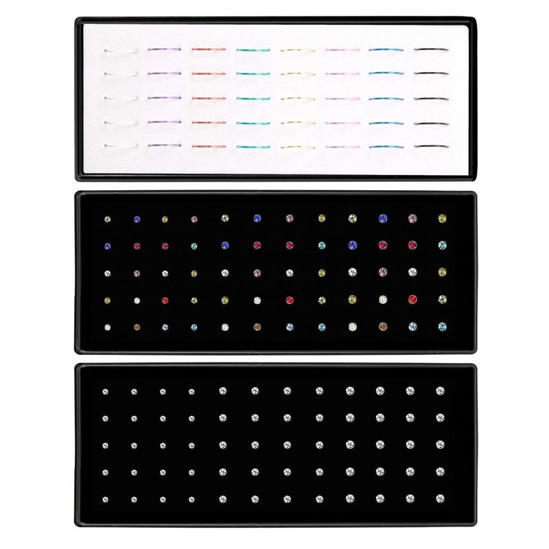 - ❸ Creative Design✔ ➤7mm wearable length and 1.5/2/2.5mm crystal of 120 pcs white and multicolor Nose studs. 8mm diameter and 22 Gauge 22g thickness of 40 pcs colorful Nose rings. There are 3 sets in total available. Ideal Gift for Women, Girlfriend, Wife, Daughter or Daily Wear.