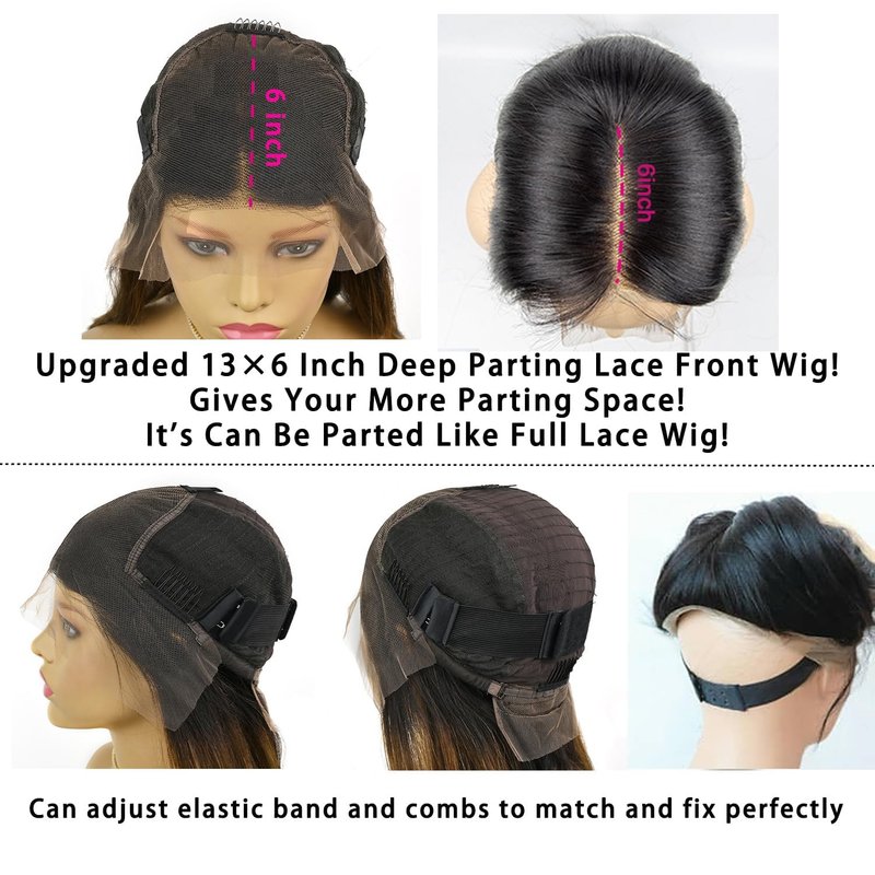 - 13x6 inch deep parting give a natural hairline to make wigs natural looking, the wig can be part any way, can be parted middle part and side part. No matter which angle you look at, it’s like your own hair.