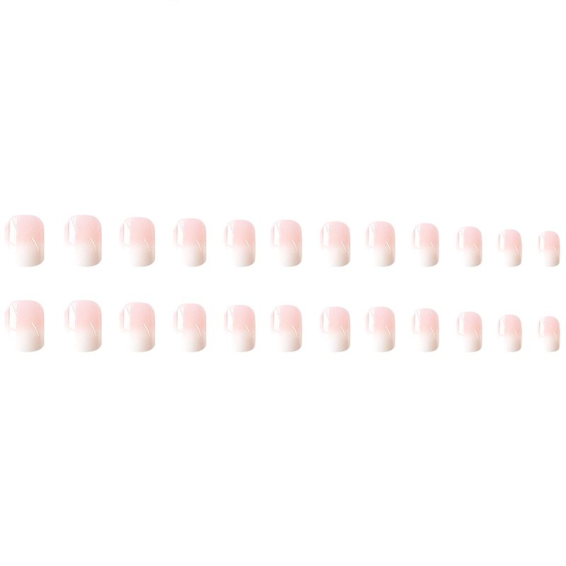 Ombre Press on Nails Short Square Fake Nails Nude False Nails Pink Nails Press ons Full Cover Acrylic Stick on Nails Gradient White French Tip Glossy Glue on Nails for Women Manicure Set 24Pcs