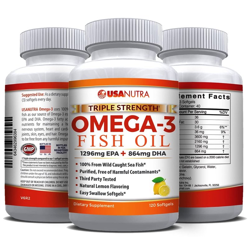 USANUTRA TRIPLE STRENGTH OMEGA-3 FISH OIL has much more essential EPA and DHA Omega-3 fatty acids than bargain brands. We give you 2250mg of high quality Omega-3 every day, 100% from wild caught sea fish. Bargain fish oil may use farm raised fish or dilute with vegetable oil.
