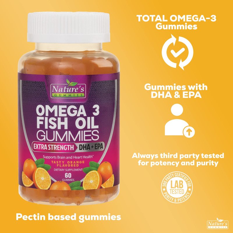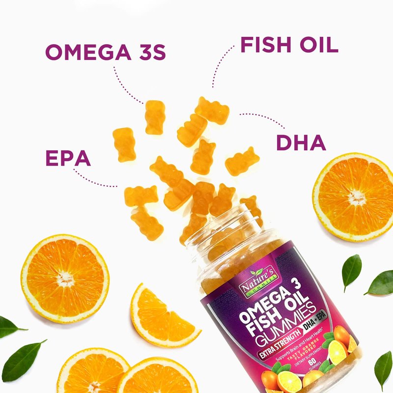- Omega Fish Oil Gummies: Nature's Gummies Omega 3 DHA EPA fishoil gummy vitamin supplements for heart, joint, brain, eyes, immune health support for adults women men teens kids, best high strength burpless chewable omega3 supplement with fatty acids vitamins adult capsules mini chews liquid nature oils omegas acid omga3 fish oul pills softgels triple 1000mg 6 1200 mg 2000mg 9 2400 2400mg