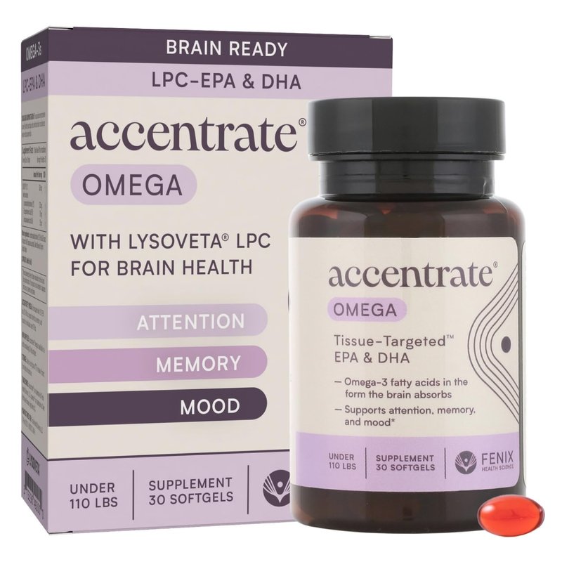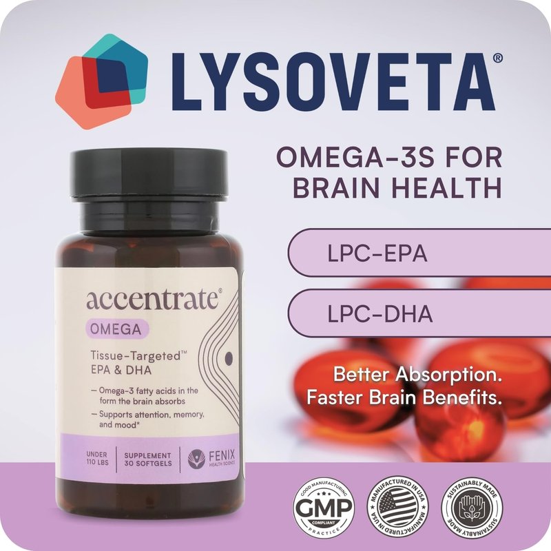 Omega w/LYSOVETA LPC | EPA & DHA Supplements for Brain Health | Focus, Attention, Memory, & Mood | 6X Higher Absorption Than Fish Oil | Omega-3 Fatty Acid Supplements | Highest Potency LPC-DHA