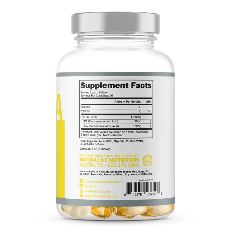 OmegaOne Omega-3 Fish Oil Supplement by NutraOne (90 500mg Fish Oil Pills)