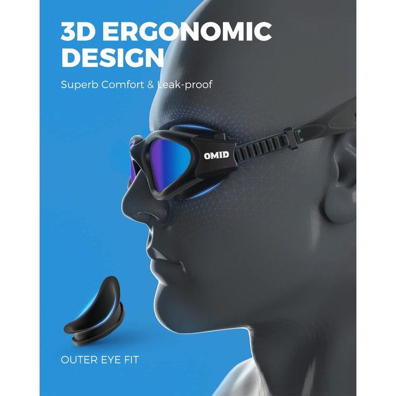 - Professional Leak-proof & UV Protection - Ergonomic design with 3D frame ensures a perfect fit and never allows water leak in to protect your eyes from irritation. OMID swim goggles are constructed with 100% UV protection to filter out harmful rays, which will bring you worry-free, crystal clear swims every time.