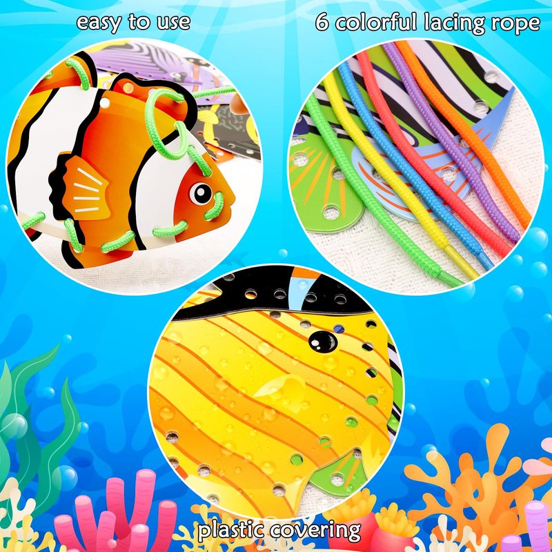 - Great Size for Kids: Each sea creature card is about 5.6 inches in height and 6.4 inches in diameter, and is perfect for little hands to hold. Each laces are 3.94 feet long and can complete a whole card, so you have the ability to lace them in different ways. Perfect for early motor skill development and hand-eye coordination.