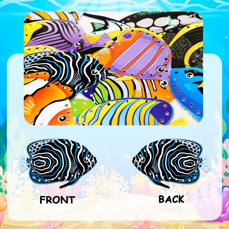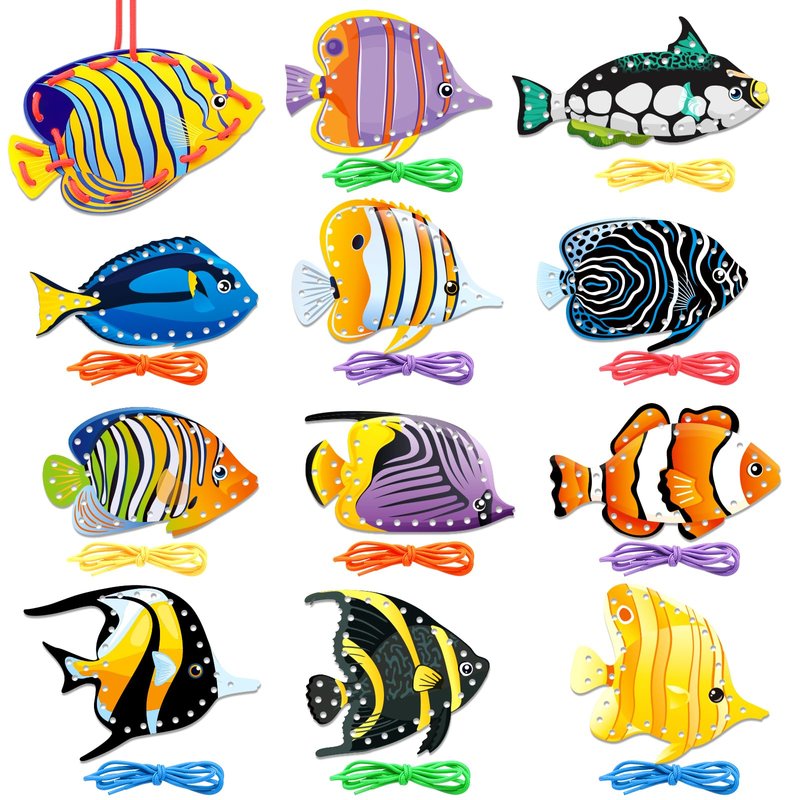 - Tropical Fish Lacing Cards Set: You will get 12 pieces of tropical fish lacing cards in 12 different patterns with 12 colorful laces; The card is printed on double-sided, and there are 6 colors of the laces, which can be freely mixed and matched with marine animal cards. Perfect craft project for preschool and home, they will love this set!