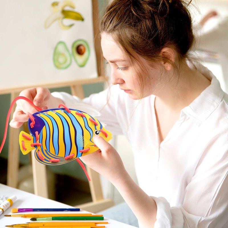 These tropical fish lacing cards are a sewing game for children to develop imagination education, which improves children's hand-eye coordination. This will allow children to live and provide several hours of entertainment activities.
