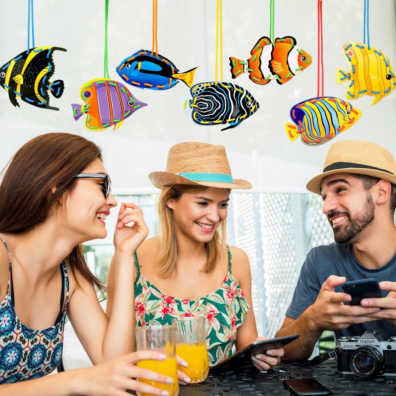 Omlisca Tropical Fish Lacing Cards 12 Pack Ocean Fish Sea Animals Double Sided Cards Sewing Games Ocean Theme Party Decorations for Preschool Home Developing Imagination Education Supplies