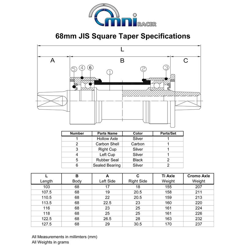 OMNI Racer Worlds Lightest JIS Square Taper Bottom Bracket- English (68x113.5mm)