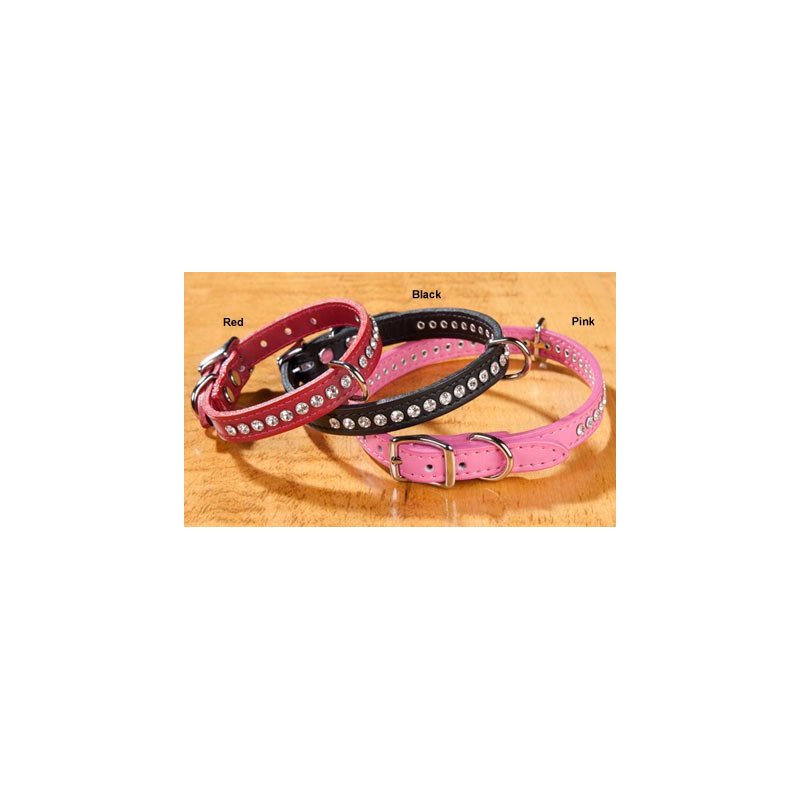 OmniPet Signature Leather Crystal and Leather Dog Collar, 16", Red
