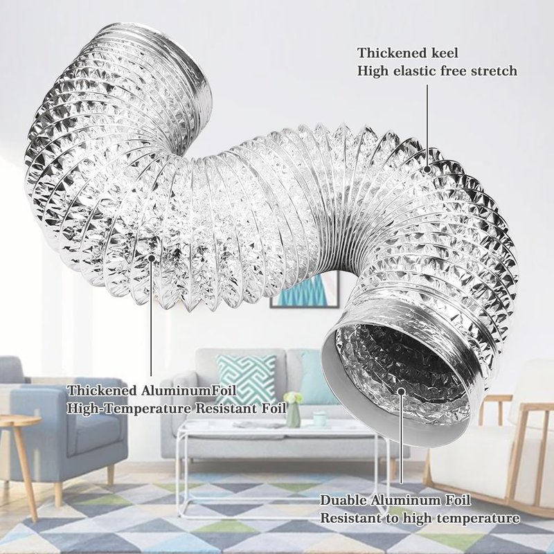 - WIDELY USED: The flexible dryer vent hose suits HVAC system. It will move and deliver air in Kitchens (cooking exhaust), Green Houses and Grow Rooms (Air Circulation, Intake, Exhaust and Light Fixture Cooling), Bathrooms (Smell and Moisture Exhaust), Dryer Rooms, Grow Tents and other applications etc.