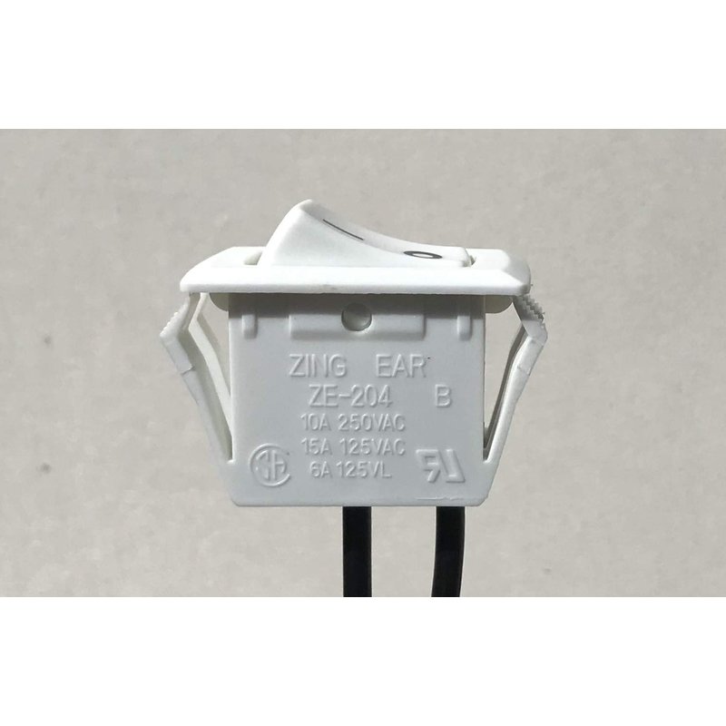 On Off Rocker Switch for Under Cabinet Fixture - Zing Ear ZE-204 - White, 10A 250VAC, 15A 125VAC, 6A 125VL, SA RU Listed.