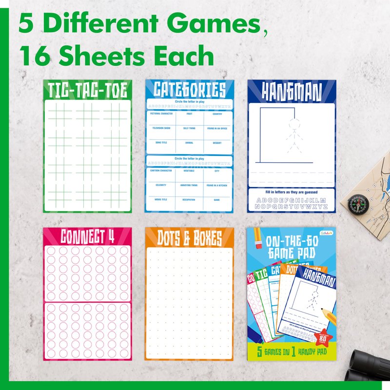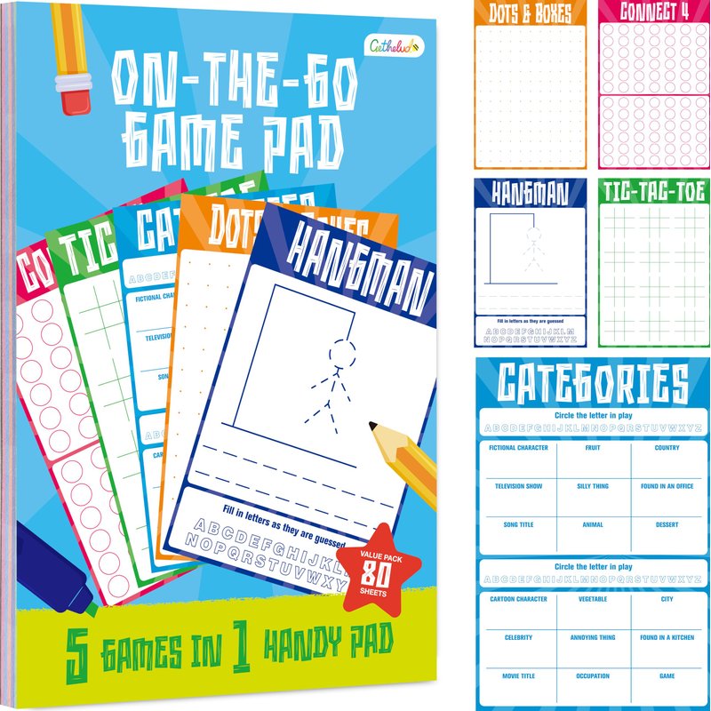 - Classic Games Collection: Enjoy a variety of timeless games including Hangman, Tic-tac-toe, Dots & Boxes, Categories, and Connect 4, all in one compact pad, ideal for all ages.