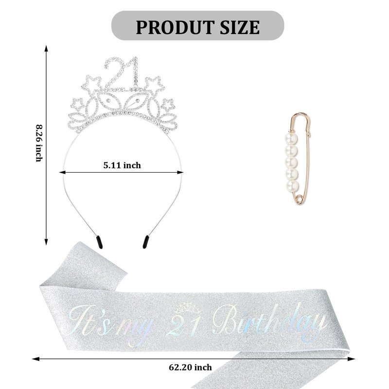 - Cute 21st Birthday Party Kit: The birthday hair accessories for girls including 1 x silver 21st birthday headband, and 1 x silver shiny It’s my 21 birthday sash