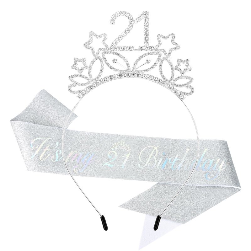 Ondder Silver 21st Birthday Sash and Tiara Shiny Birthday Crown and Sash Kit 21st Birthday Star Headband 21st Sparkly Rhinestone Headband Birthday Party Decorations Gifts Party Favors Supplies for Girls
