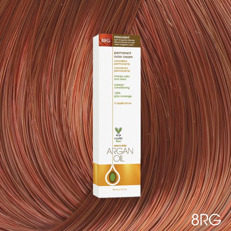 One N' Only Permanent Hair Color - Permanent Hair Dye Made with Argan Oil - Delivers Rich, Accurate Tones with Gray Coverage - Improves Moisture & Elasticity - 8RG Light Tangerine Blonde (3 oz)