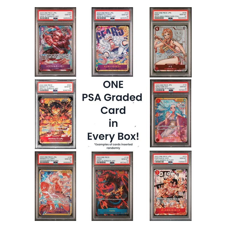 - Deluxe One Piece Collectors Gift Box featuring a One Piece MINT Funko Pop with Pop Protector & PSA Graded 10 or 9 Trading Card with potential of pulling PSA 10 Alt Art Cards & Vaulted/Special Edition/Exclusive Funko Pops!