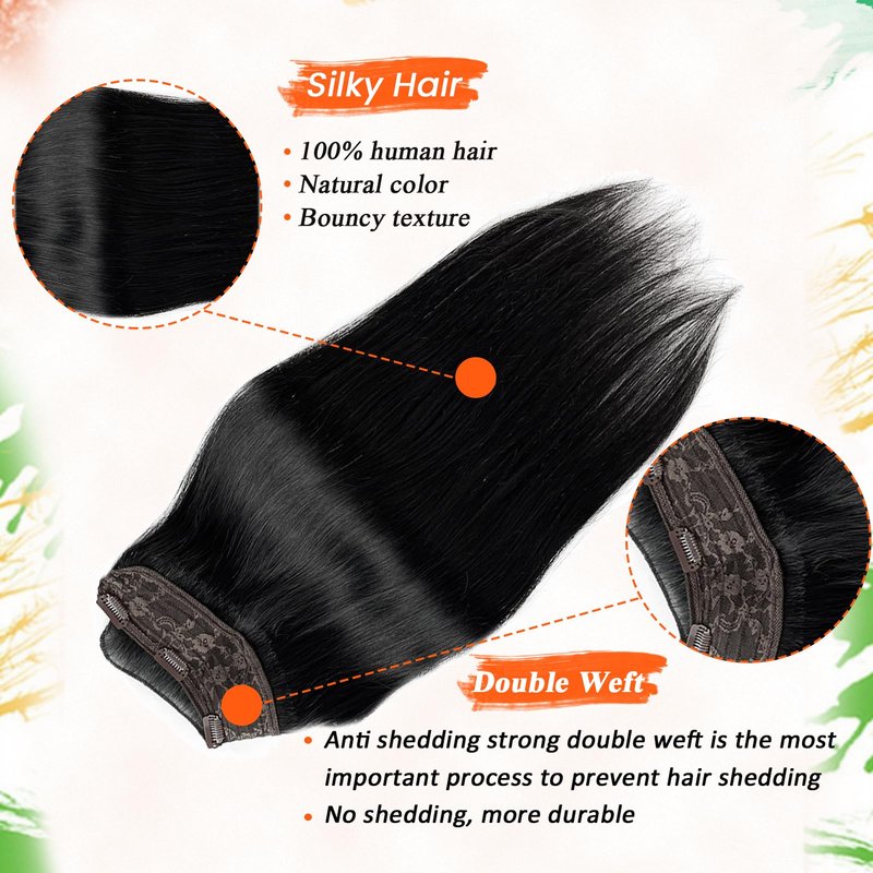 - 【Innovative Product - One Piece Clip in Hair Extensions】New type one piece clip in extensions is the easiest way to add hair volume, just need to clip the 5 clips, you will get a full hair within 1 minute! Compare with 7pcs 16 clips and 5pcs 12 clips hair extensions, 1 piece hair extensions is only 1pc weft with 5 clips, less burden to your scalp, but the same wearing effect. And 1pc clip ins is easier to install, beginners could do it perfectly. Every pack with THREE clips for REPLACEMENT.