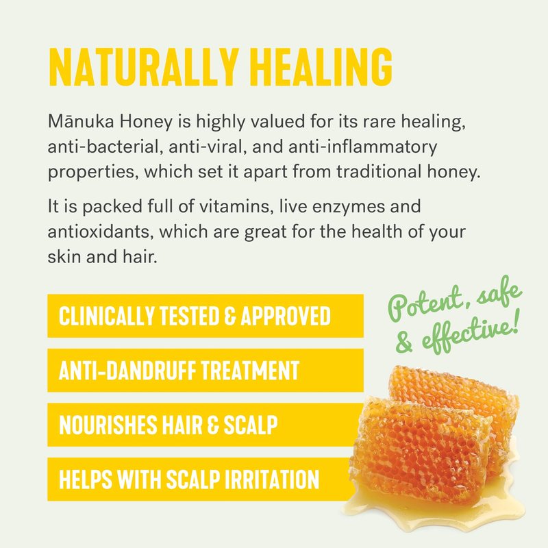 - 2-in-1 shampoo & conditioner: Simplify your haircare routine with our 2-in-1 formula designed for active lifestyles. Our conditioning shampoo thoroughly cleanses and conditions in a single step, utilizing the natural benefits of manuka oil and honey for nourished hair.