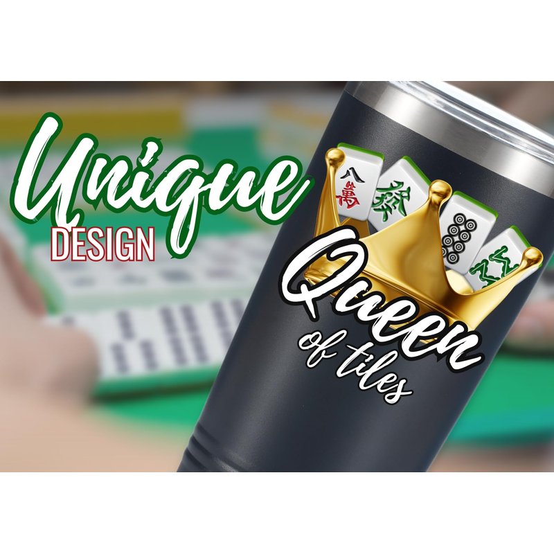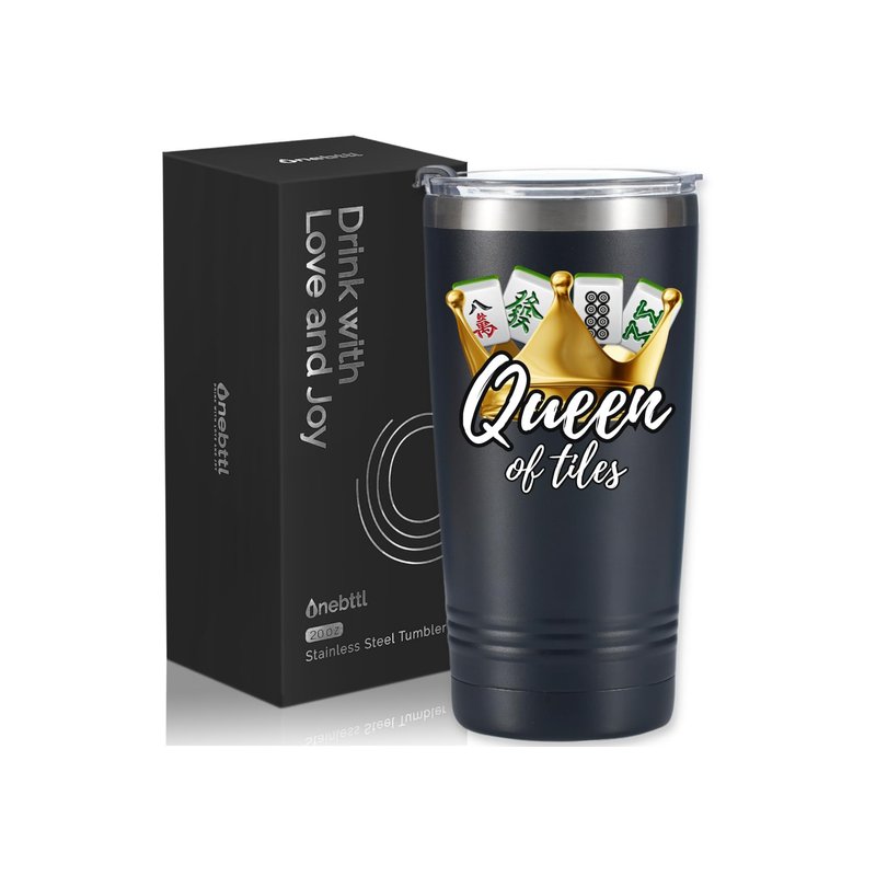 Onebttl Mahjong Gifts for Women/Men, Funny Gifts for Mahjong Lovers, 20oz (590ml) Insulated Stainless Steel Mah Jongg Gifts, Mahjongg Cup, Birthday Gifts, Christmas Gifts -Black - Queen