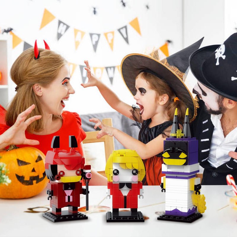 - Cool Halloween decor ideas:With 542 pieces easy-installation parts,a easy reading instruction booklet and a giftable box..Included 3 figures,alastor,adam and charlie. It is a great decoration for home or beverage shop. Improve the home or working atmosphere