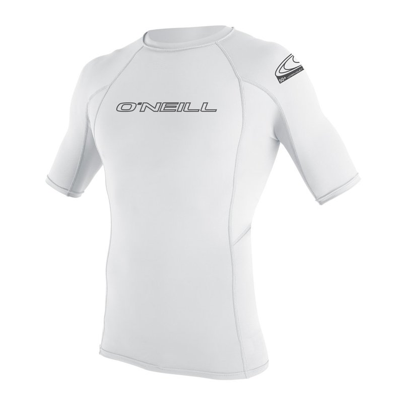 O'Neill Men's Basic Skins UPF 50+ Short Sleeve Rash Guard, White, Small