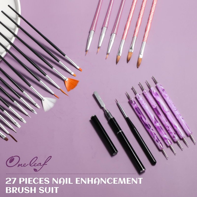 Oneleaf Nail Art Brushes Set - 27 PCS Nail Tool for Nail Art U V Gel Nail Brushes, Acrylic Nail Brushes, Liner Brushes, Dotting Tools, Dust Brush, Dual End Drawing Pen, Nail Design Kit