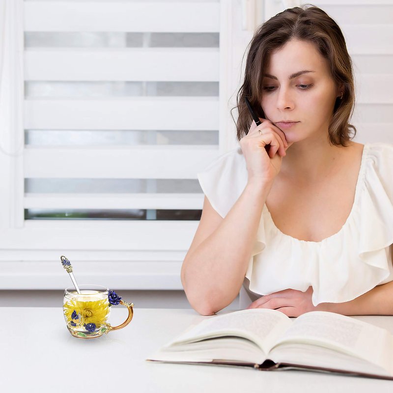 - More Safe Healthy:Our flower tea cup made of high quality eco-friendly sturdy glass material,Which is a healthier choice over plastic material.Our enamel glass mug contains no lead and barium harmful heavy metals, no toxicity, odor free, safe to use.Let you enjoy healthy lifestyles!