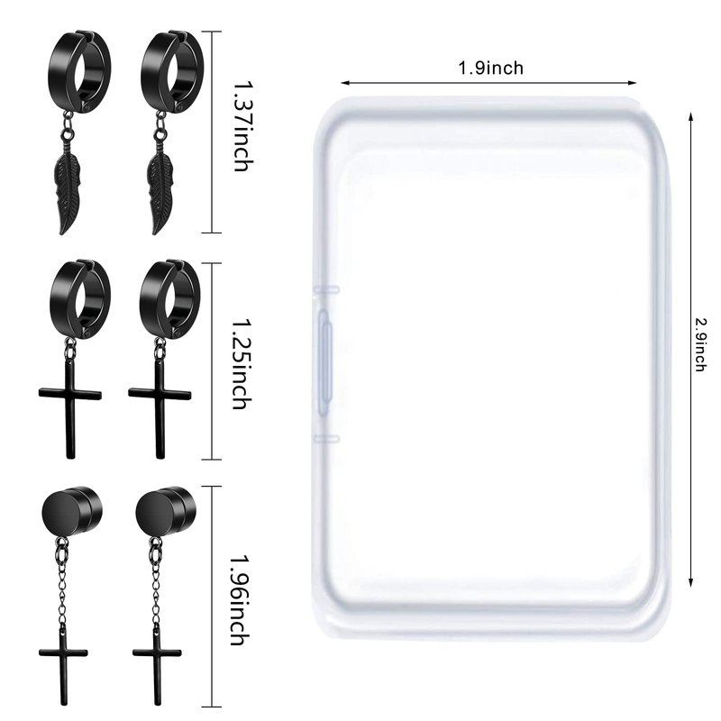 - HYPOALLERGENIC MATERIAL - These black earrings for men are made of 316L stainless steel. Nickel-free and lead-free, resist rust and resist corrode, ensure to use for a long time. Wearing these dangly earrings will make you more attractive and charming. These safe and comfortable non-piercing earrings are suitable for women and men.