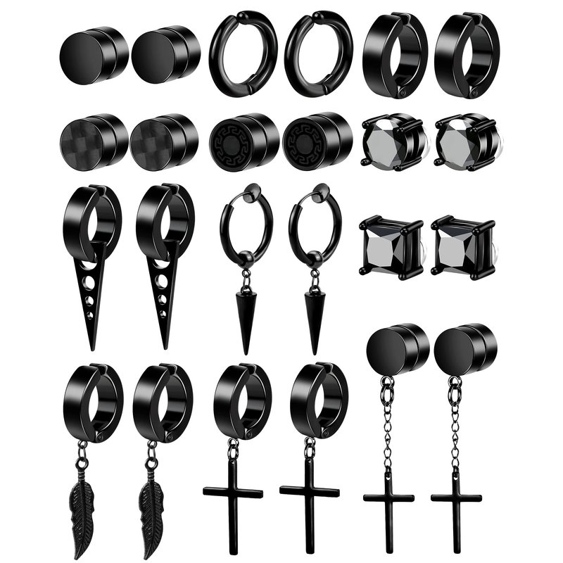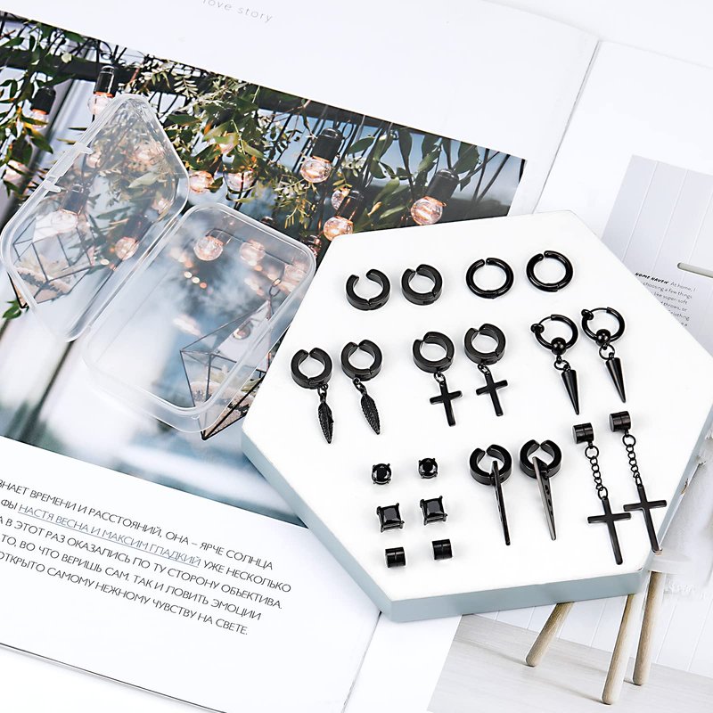 - PACKAGE INCLUDE - 12 pairs magnetic earrings for men come with a box. Include magnetic earrings, earrings for men, clip on earrings for men. Different styles provide more wearing options to match daily wear.