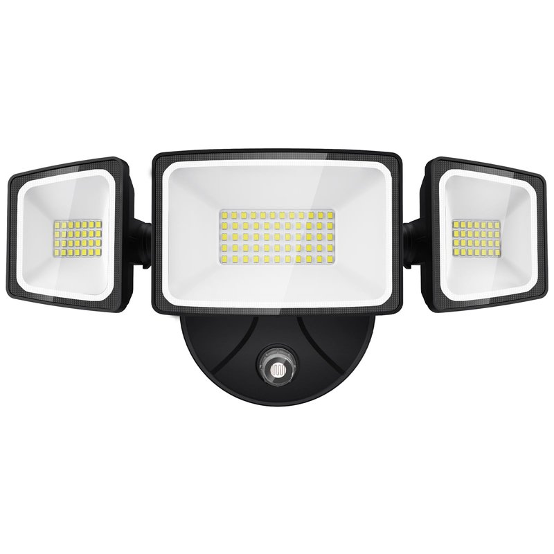 Onforu 60W LED Dusk to Dawn Security Lights, 6000LM Exterior Flood Light, IP65 Waterproof Outdoor 3 Adjustable Heads Photocell Lights Fixture, 6500K White Floodlights for Garage, Patio, Yard
