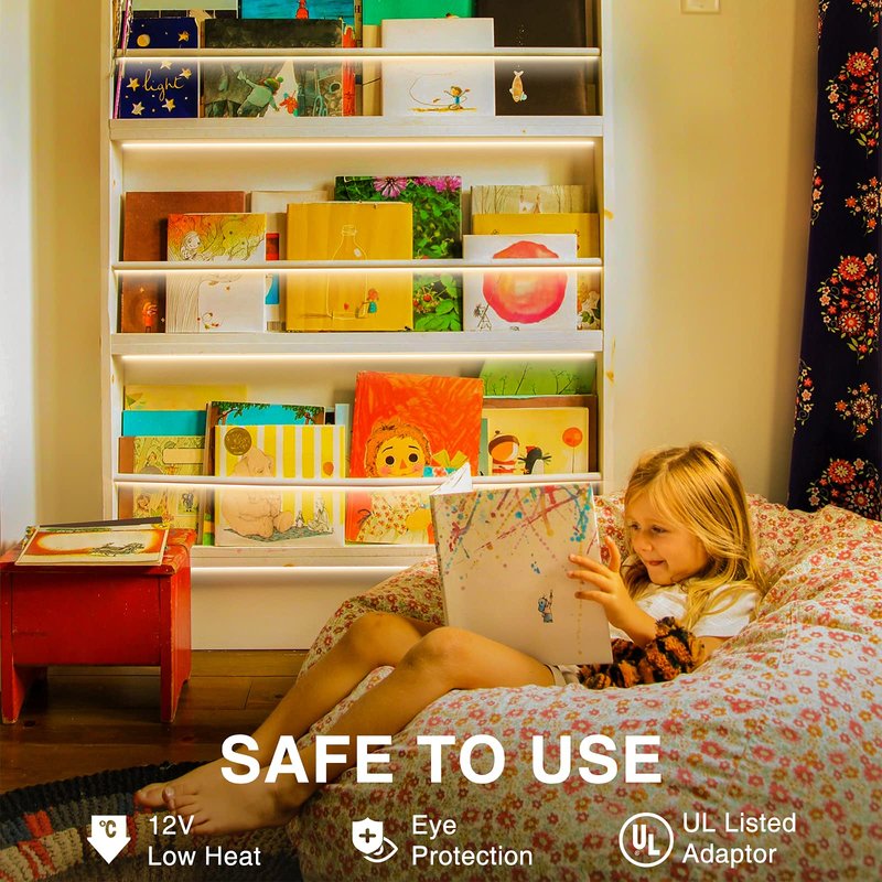 - 💡【SAFE TO USE】 The dimmable light strip operates with 12V working voltage and a UL Listed power adapter for safe use. Extremely Low Heat and touchable. The excellent heat dissipation makes it much more durable and reliable.
