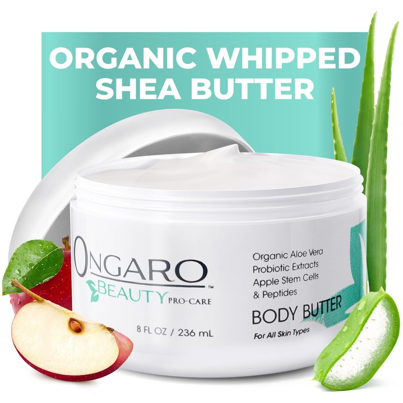 Ongaro Beauty - Whipped Body Butter Cream, Organic Shea Butter Whipped Body Butter for Women, Whipped Shea Body Butter with Aloe Vera, Hyaluronic Acid, Vitamin C & E, Body Care for Women - 8 Fl Oz