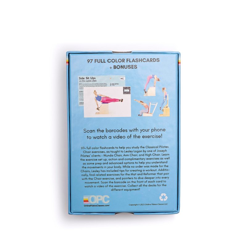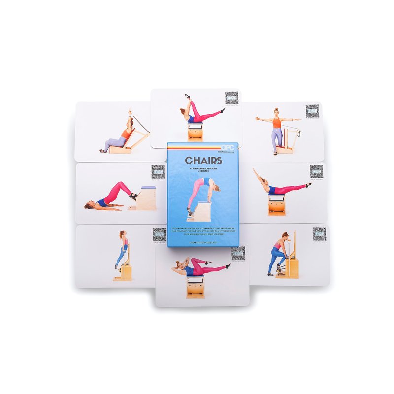 OnlinePilatesClasses Pilates Chair Deck with Video Tutorials, Fitness Flash Cards with 97 All-Levels Cards Set for Home Gym Exercise, Chair Not Included