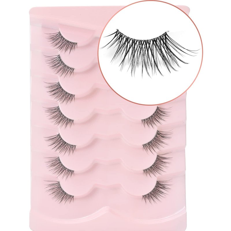 Onlyall Half Eyelashes Corner Lashes Natural Lashes Half Lashes Wispy End Lashes Corner Eyelashes 3/4 Lashes Clear Band Lashes 7 Pairs C02 (6MM-14MM)