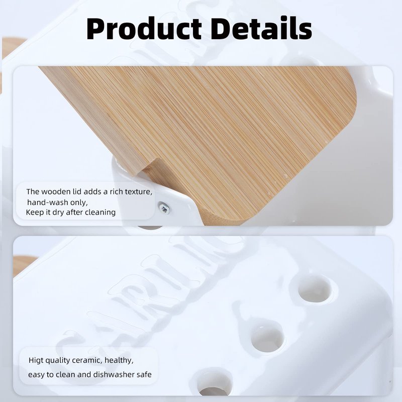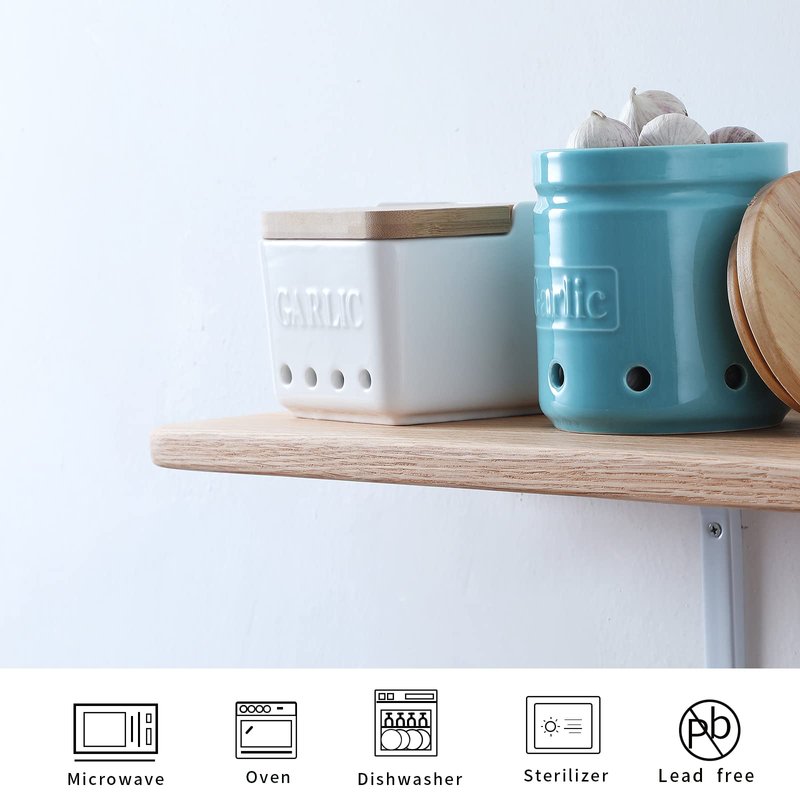 - 【Fashionable appearance】 -There are 4 holes on the porcelain, which can keep the garlic ventilated inside.