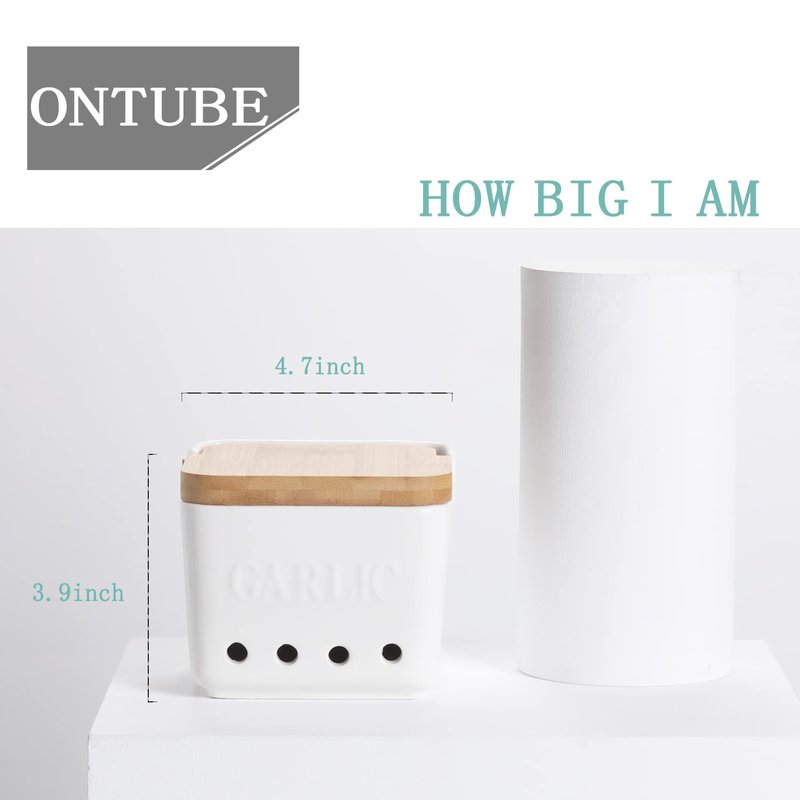 - 【Ceramic material】-ONTUBE Garlic Keeper is made of ceramic.The surface is smooth and translucent, which is easy to clean.