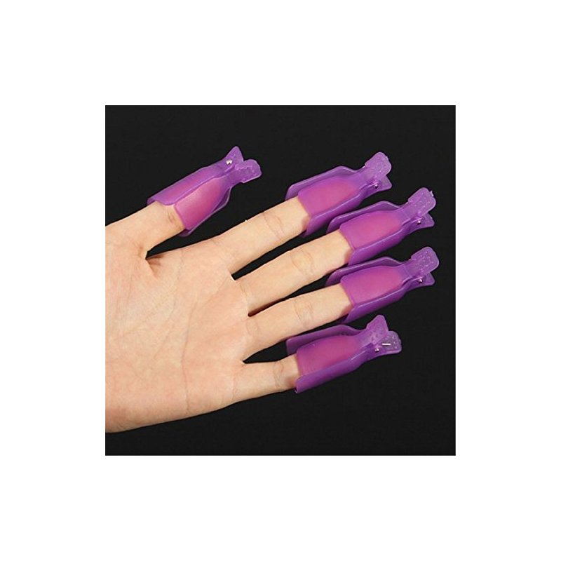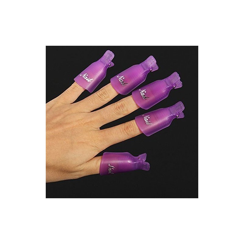 Onwon 10pc Professional Plastic Acrylic Nail Art Soak Off Cap Clip Uv Gel Polish Remover Wrap Cleaner Clip Cap Tool (Purple)