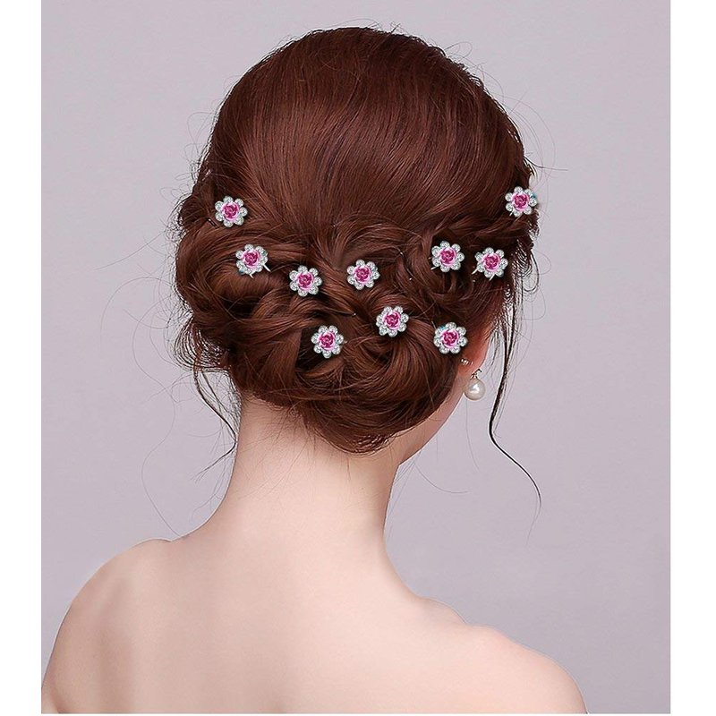 - 🌹 Beautiful shape 🌹 Rose flower crystal hair pins, each with a metal rose surrounded by a ring of sparkly clear rhinestones, add sparkle and glamour to your hair.