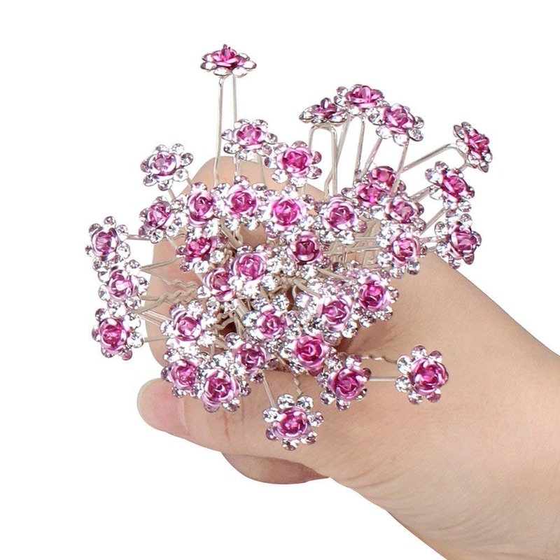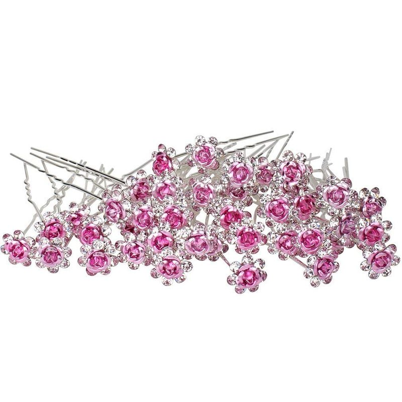 Onwon 40 Pieces Rose Flower Rhinestone Hair Clips Crystal Hair Pins for Bridal Wedding Party Daily Life Women and Girls Hair Jewelry Acessories, with Storage Bag (Pink)