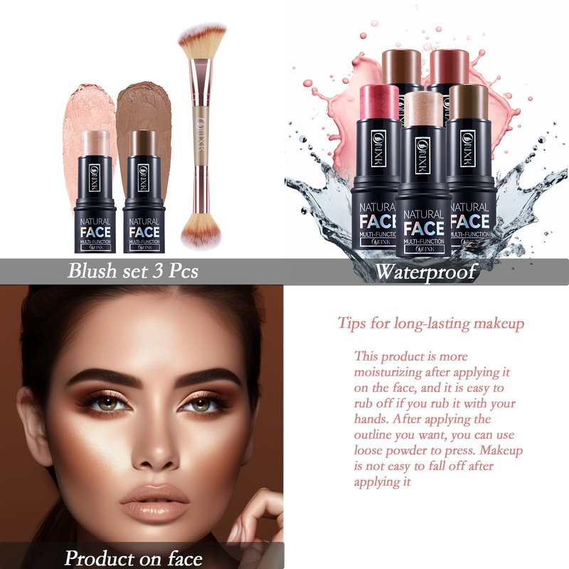 ONXK Highlighter Makeup Cream Contour Stick - Easy to Apply Natural Bronzer Stick & Blush Stick Non-greasy & Waterproof Blush for Cheeks Face Beauty Makeup Kit(Including Makeup Blush)