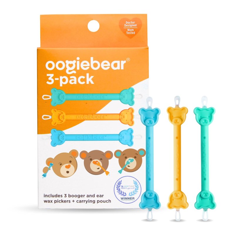 Just like adults, babies feel their best when their nasal passages are clear. However, clearing a baby's nose presents a unique set of challenges. Traditional aspirator bulbs may offer some relief for wet mucus, but fall short when faced with the tougher challenge of sticky or dried nasal debris - commonly known as baby boogers. Worse yet, these bulbs might push the boogers further into the nose, complicating the removal process. Enter the oogiebear - the pioneering tool in infant nasal care. It stands out as the first baby nose cleaner specifically designed to safely and gently clear both sticky and dried boogers from a child's nostrils. Developed with a baby's delicate anatomy in mind, the oogiebear features a dual-ended design: a loop end for sticky situations and a scoop end for dried mucus, making it the perfect baby nasal booger and ear wax cleaner. Crafted from soft rubber and firm plastic, the oogiebear is easy for parents to maneuver while being gentle on baby's sensitive areas. Its adorable bear-head design isn't just for looks - it also ensures safety, preventing the tool from being inserted too far into a baby's nose or ears. Ideal for newborn care and a must-have in your baby essentials list for infants aged 2, 3, 4 months and beyond, the oogiebear is a superior alternative to the traditional snot sucker. This baby health must-have promises a gentler, more effective approach to maintaining your baby's nasal and ear cleanliness. Discover the difference with oogiebear, the ultimate solution in baby booger management and a staple in your diaper bag essentials.